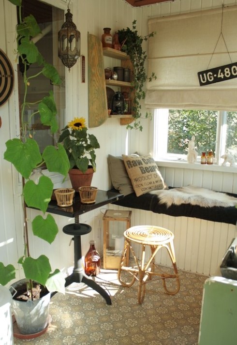 My porch has turned in to a green room. I planted some seeds back in the winter and (for some miraculous reason) managed to grow a cucumber. I used to have more cucumber plants but since I'm not that good at gardening I ended up loving most of them to death. I also planted some egg plants, but the couple I still have stopped growing and are filled with greenfly so I don't have any high hopes for them anymore.