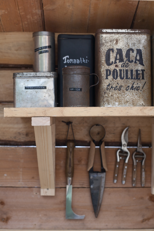 And the garden tool shed from the inside looks like this. Customized to our tools with materials I found from our home. I think the result is as pretty as it is functional and fits in our garden like it has always been there.