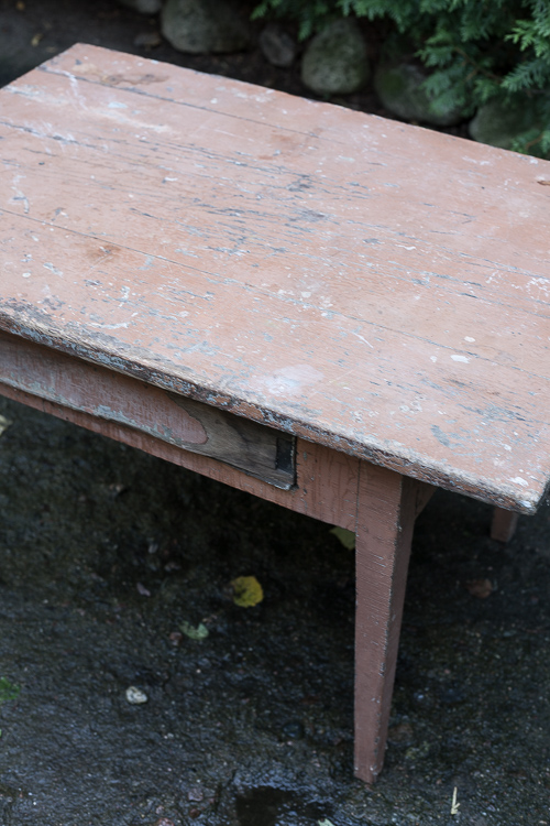 I've been thinking of changing the livingroom table to something more warmer and wood toned than this painted black veneer thing. I have a suitable candidate in the garage, but it really needs a lot of work until it can be called a table again. It's all wonky and a little bendy here and there. The paint is awful and the drawer is broken, but I still think after a lot of tlc, this might be it for my living room, so I got it out. No need to plan anything for the rest of this week, I'll be busy scratching those paints off. Wish me luck.