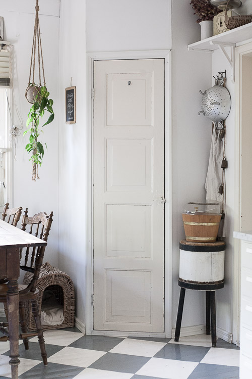 Syyskuun valo keittiössä on vähän raaka, mutta ihana. Alempaa paistava aurinko läikehtii lattioilla ja seinillä tuoden piristystä huoneeseen heti aamusta ja jatkaen aina alkuiltapäivään asti. Piristystä tähän päivään onkin tarvittu sillä taas meni nenän edestä pitkään, jo itseasiassa vuosia etsimäni komeron ovi.