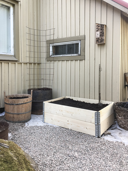 Soraksi seulottiin oman pihan hiekoista lisää singeliä, jolla peitellään kaikki kankaat ja näyttää kyllä siltä, että tästä saattaa tulla ihan kiva pikku keittiöpuutarhanurkka tänne takapihalle. Pitkästä aikaa alkaa tuntua siltä, että tänä kesänä saadaan satoa kyllä ja nyt on niin kiva suunnitella, että mitäs tuonne sitten laitetaankaan kasvamaan. Ainakin tilliä, lipstikkaa, ruohosipulia ja papuja, mutta ehkä pitkästä aikaa myös vähän jotain juureksia ja vaikka tomaattiakin.
